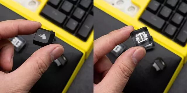 这款键盘为了贴合主题元素,所以灯光只采用了单色黄色背光,结合黑色键帽+黄色外框,真的是非常好看。