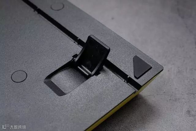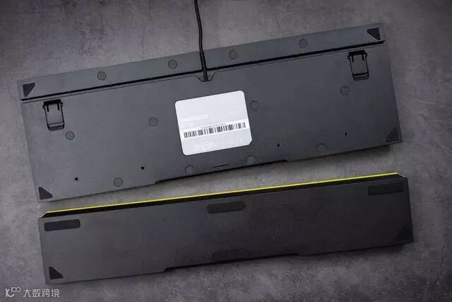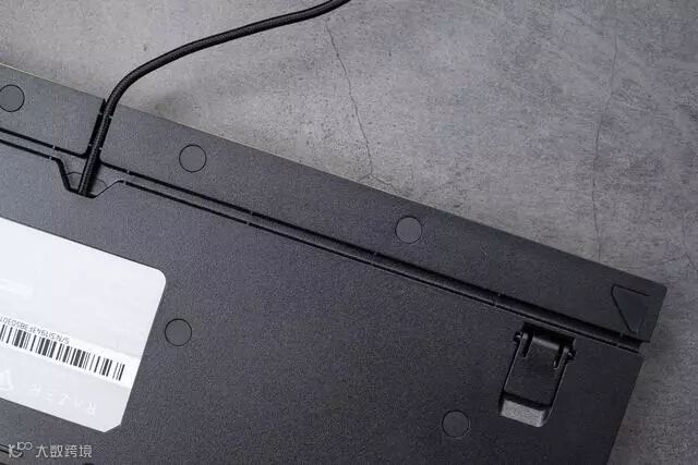 键盘是不可分离线缆设计,在键盘底部可以看见设计有3向理线槽,可以分别中:左中右方向理线。