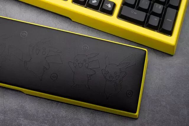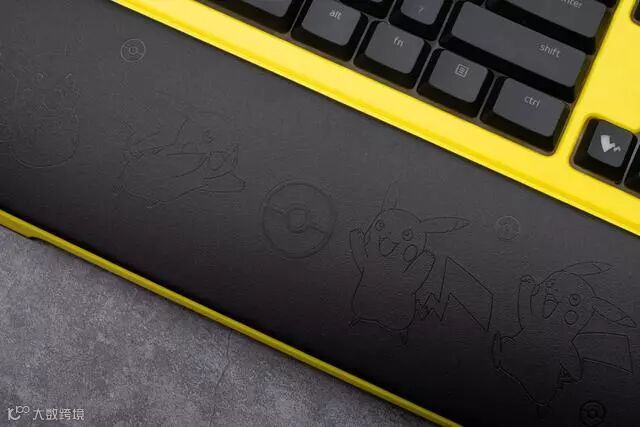 磁吸式腕托部分使用了细腻的人工蛋白皮革,在安装腕托使用会明显感觉到它的舒适性,长时间玩电脑也不会手腕酸累,特别是在皮质表面印有萌动的皮卡丘图案,真的是太萌了!