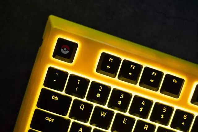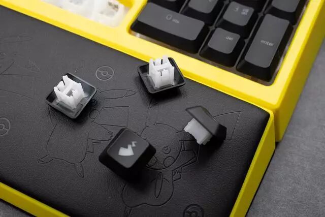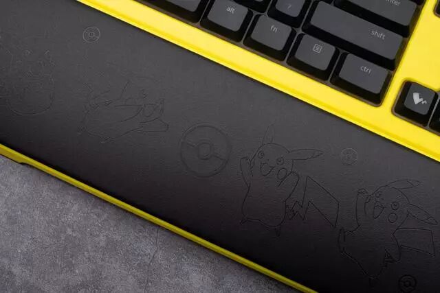 整个键盘不仅是配色结合了皮卡丘颜色,同样在键盘键帽设计上也融入了皮卡丘元素,可以发现方向键变成了皮卡丘的小尾巴,还有ESC键变得不再单调,而是精灵球图案!