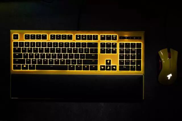 上面就是这个雷蛇皮卡丘限定款外设套的灯光效果实拍图,虽然没了RGB炫彩灯光加持,但是黄色背光结合黄色主题外壳设计,整体体现出来的效果还是非常Nice的!