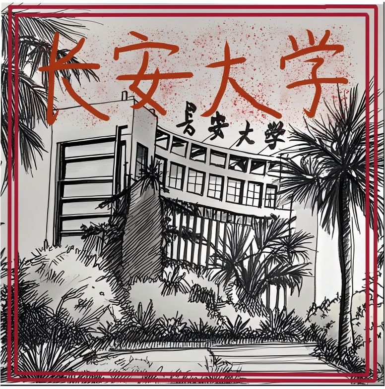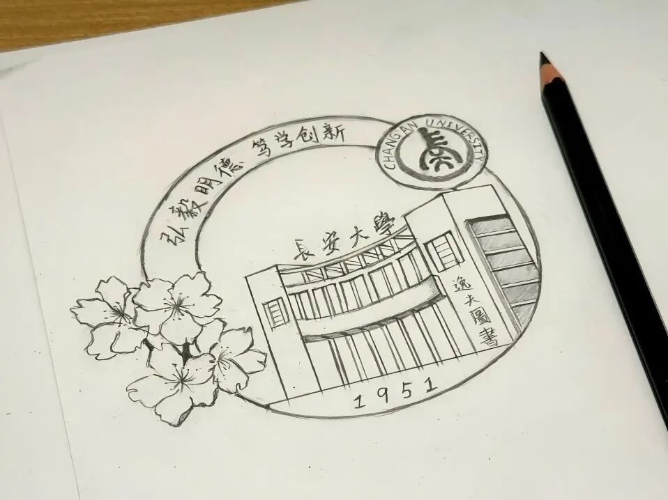 设计理念:以长安大学标志性建筑配绿植寓意生机成长,红字体显热情进取,简线黑白与红对比,具艺术与文化底蕴,适合作校园文创印章。