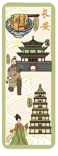 设计理念:书签融合长安历史文化元素,兼顾视觉吸引、实用与文化宣传,灵感源于历史、美食及传统与现代艺术,用专业设计与环保材料。