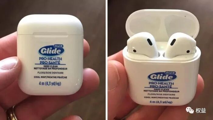 那么怎样才能避免这种情况的发生呢?这里不妨让我们来看看来自国外用户提供的解决方案。据了解,这位用户发现欧乐比Glide牙线盒似乎就是为AirPods打造的收纳盒。不得不说这真的是一个令人震惊的巧合。