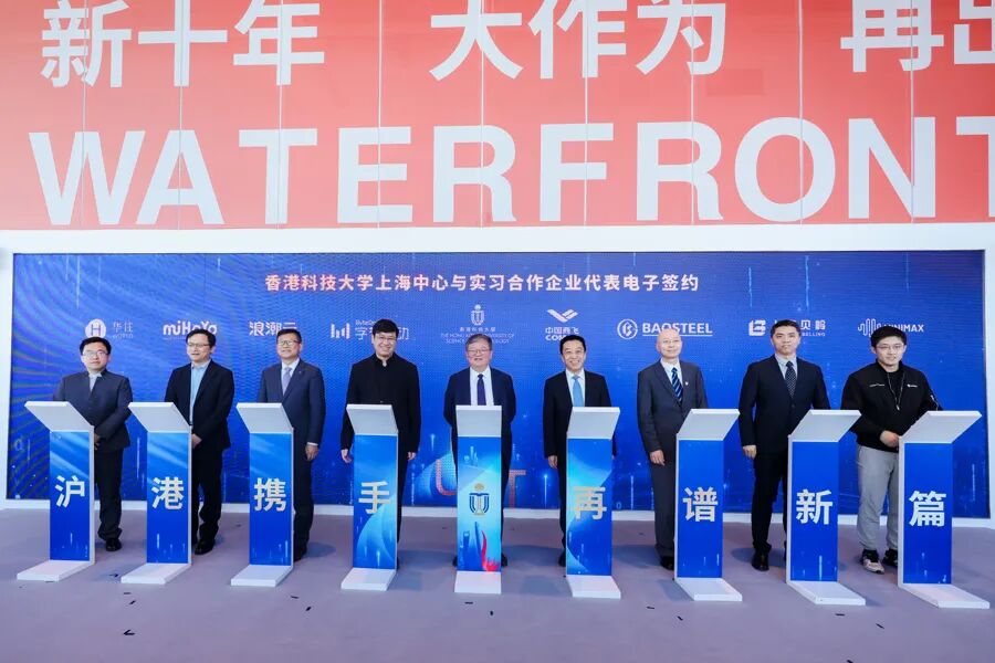 揭牌仪式现场,一系列合作帷幕已经拉开:港科大与申通地铁、上海生物医药基金、百度智能云等9家企业签署战略合作协议,将为港科大上海中心的师生提供场景及产业资源;云洲智能科技、纳德光学、天太机器人等12家企业入驻港科大上海中心;上海商飞、宝山钢铁、字节跳动等18家企业将提供实习机会。
