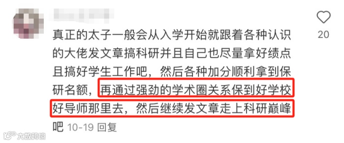 或是在录取考核时才暗中发力,借助强劲的学术圈关系网获得目标院校保研考核内容,成功保研到能力上限外的名校。