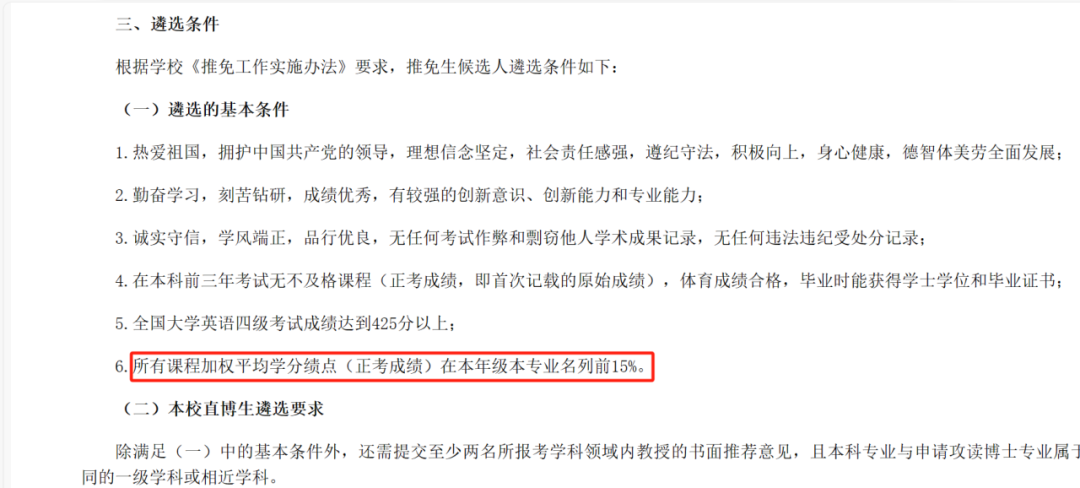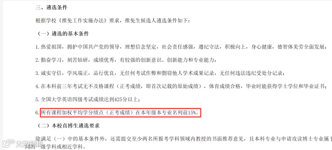 众所周知,成绩在保研考核中占据着绝对重要的位置,无论是保研资格获取,还是目标院校录取,都对保研er的成绩情况有着不低的要求,如安徽理工大学计算机科学与工程学院2024年推荐免试攻读研究生工作实施细则对推免候选人的遴选条件要求为“所有课程加权平均学分绩点(正考成绩)在本年级本专业名列前15%”。