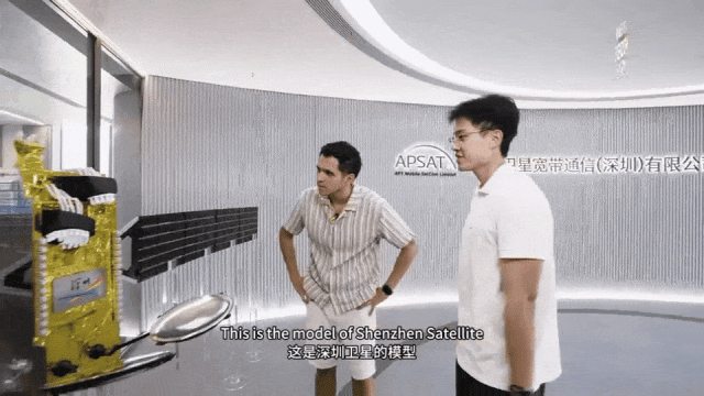 Chico和陈熙林首先来到了空天技术产业集群代表性企业——亚太卫星宽带通信(深圳)有限公司总部所在地星通大厦。