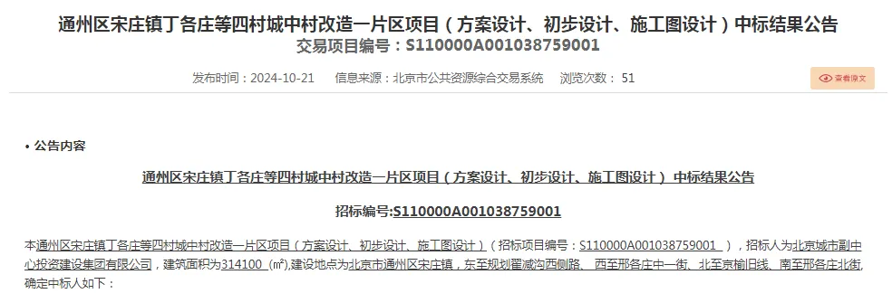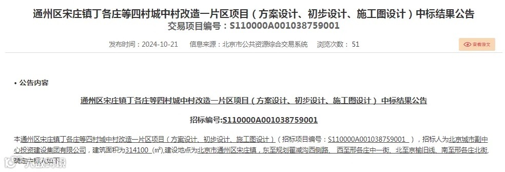 通州区宋庄镇丁各庄等四村城中村改造项目