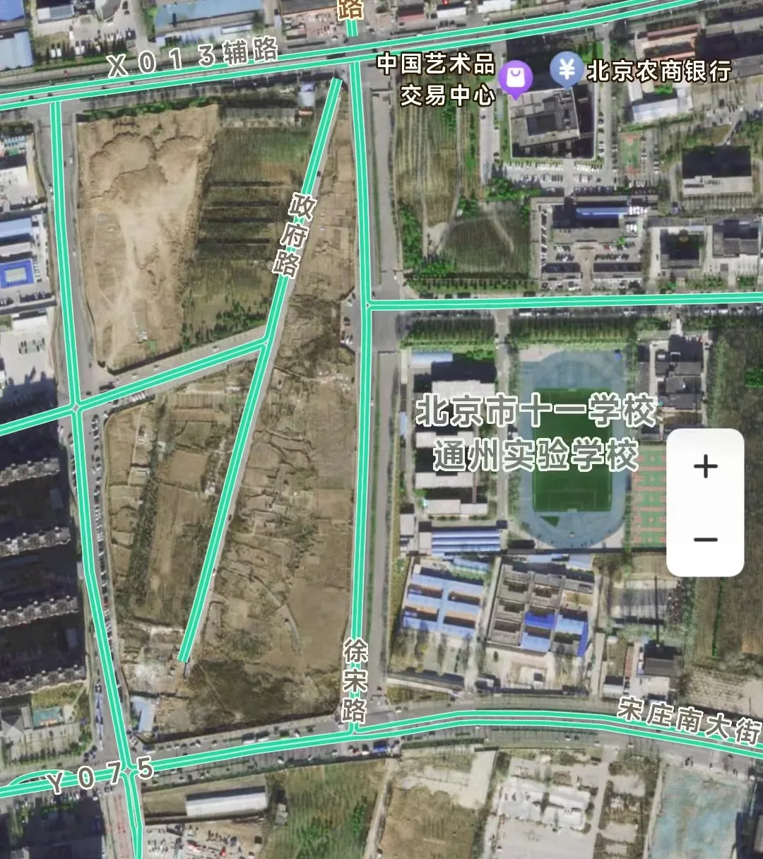 地图显示北京市十一学校通州实验学校(超牛九年一贯制学校)就在该街区内,规划显示,就在该校仅隔一条马路的两个地块将规划高中,加上原有的学校,将实现”十二年一贯制“。