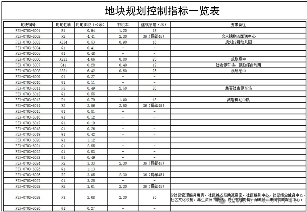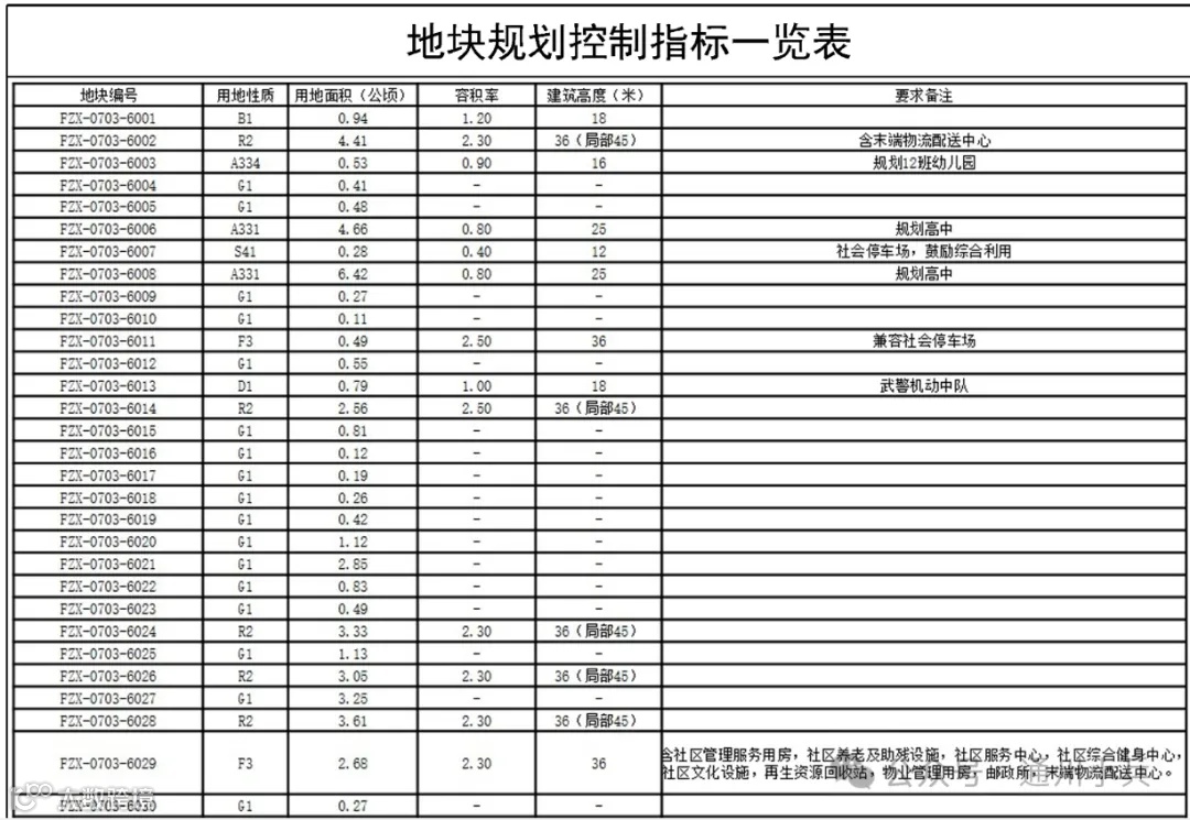 规划图则1为该区域西侧地块,具体为07组团03街区FZX-0703-6001——FZX-0703-6030地块。