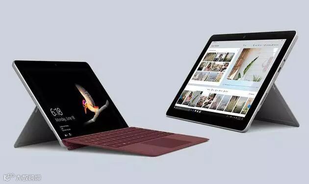 Surface Go于2018年7月发布,是迄今为止最轻薄、最小巧的Surface产品。Surface Go算是三年前Surface3的后续产品,它同样采用了3:2比例的10英寸PixelSense显示屏,分辨率达到了1800X1200,支持4096级Surface Pen压感笔,通过前置摄像头还能够实现Windows Hello人脸识别解锁。相较三年前的前辈,Surface Go改进了背部支架式铰链,现在这一部分的机械结构与Surface Pro完全类似,官方提供了最多165度的无极调整。