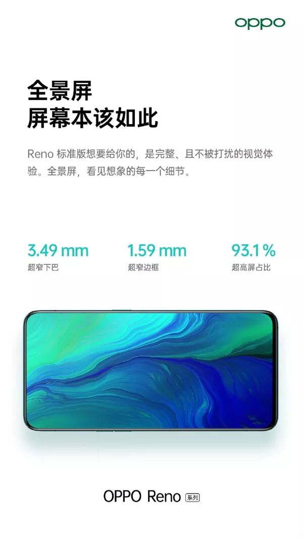 OPPO Reno 爆出更多细节,屏占比达到 93.1%