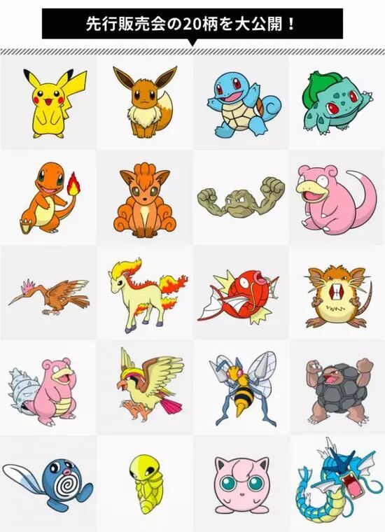 目前,已经有包括皮卡丘、伊布、杰尼龟、妙蛙种子等主要角色在内的 20 款图案公布,并将参与预售。