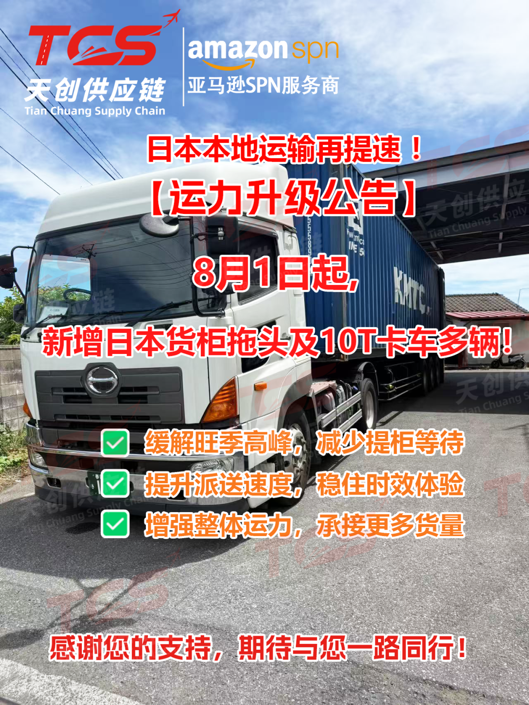 在日本本土天创供应链通过「港口拖车+自营海外仓+全境自营卡车配送」三位一体解决方案,构建了一个高效、稳定、可控的物流闭环。这不仅保障了日常运营的顺畅,更是抵御旺季风险、确保时效确定性的最强壁垒。深圳市天创供应链有限公司凭借专业的团队、强大的资源整合能力、先进的设备和定制化的服务,为客户提供优质的日本运输解决方案,助力各位卖家朋友们在日本市场赢得先机!