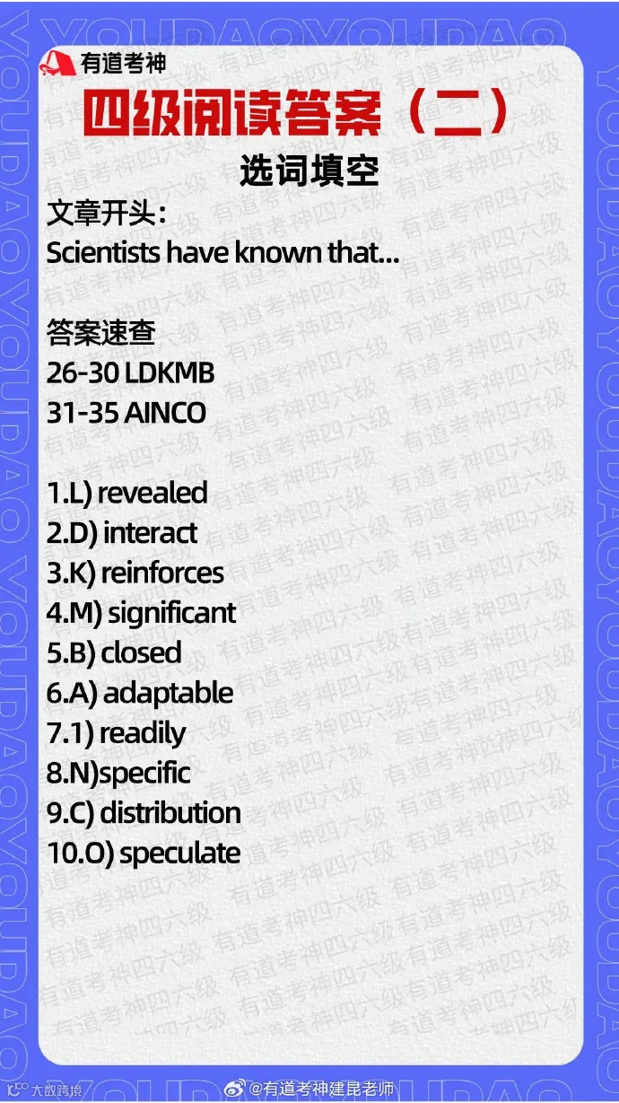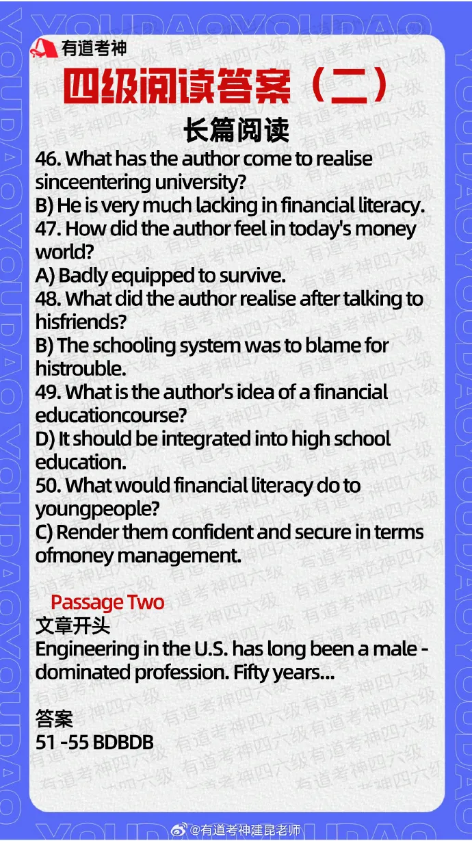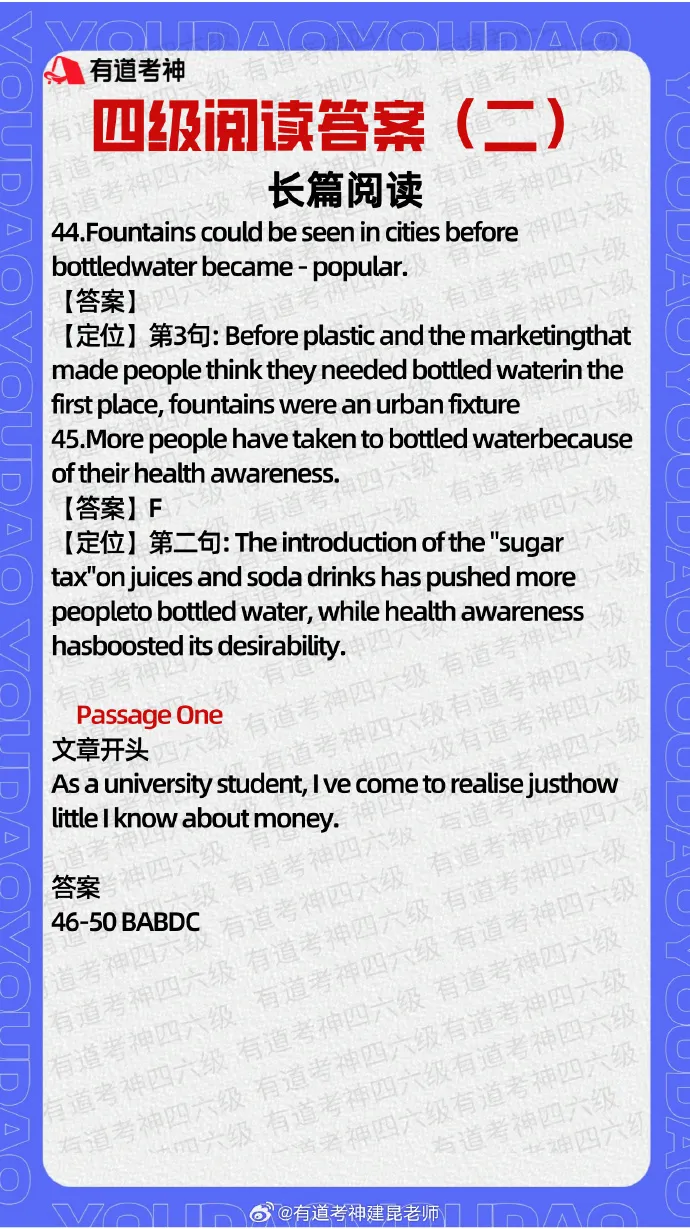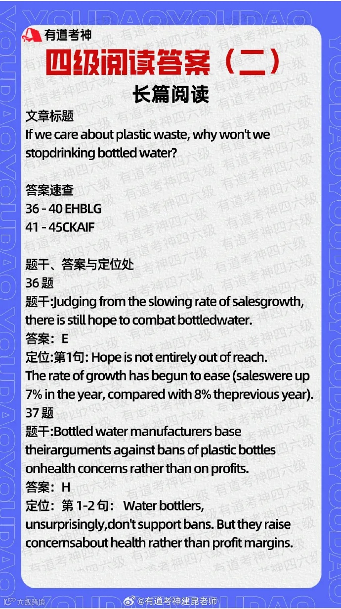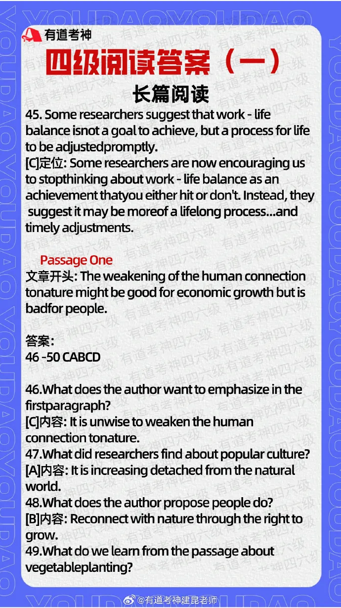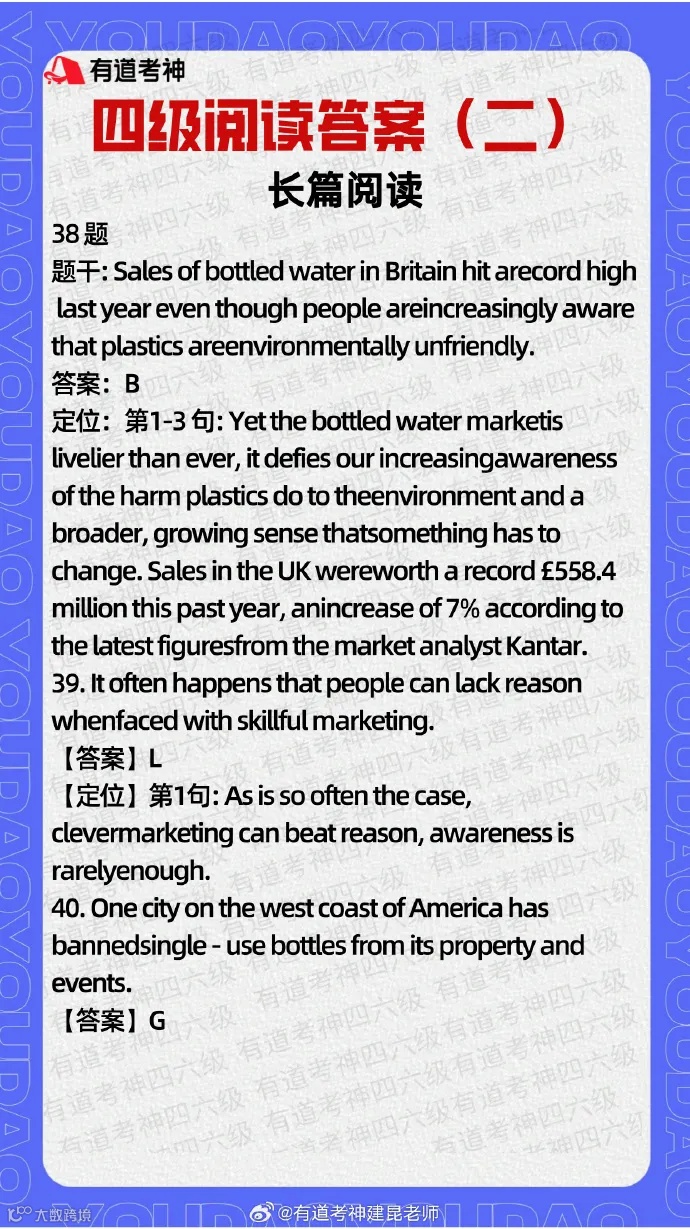 【四级阅读答案(第二套)→】
