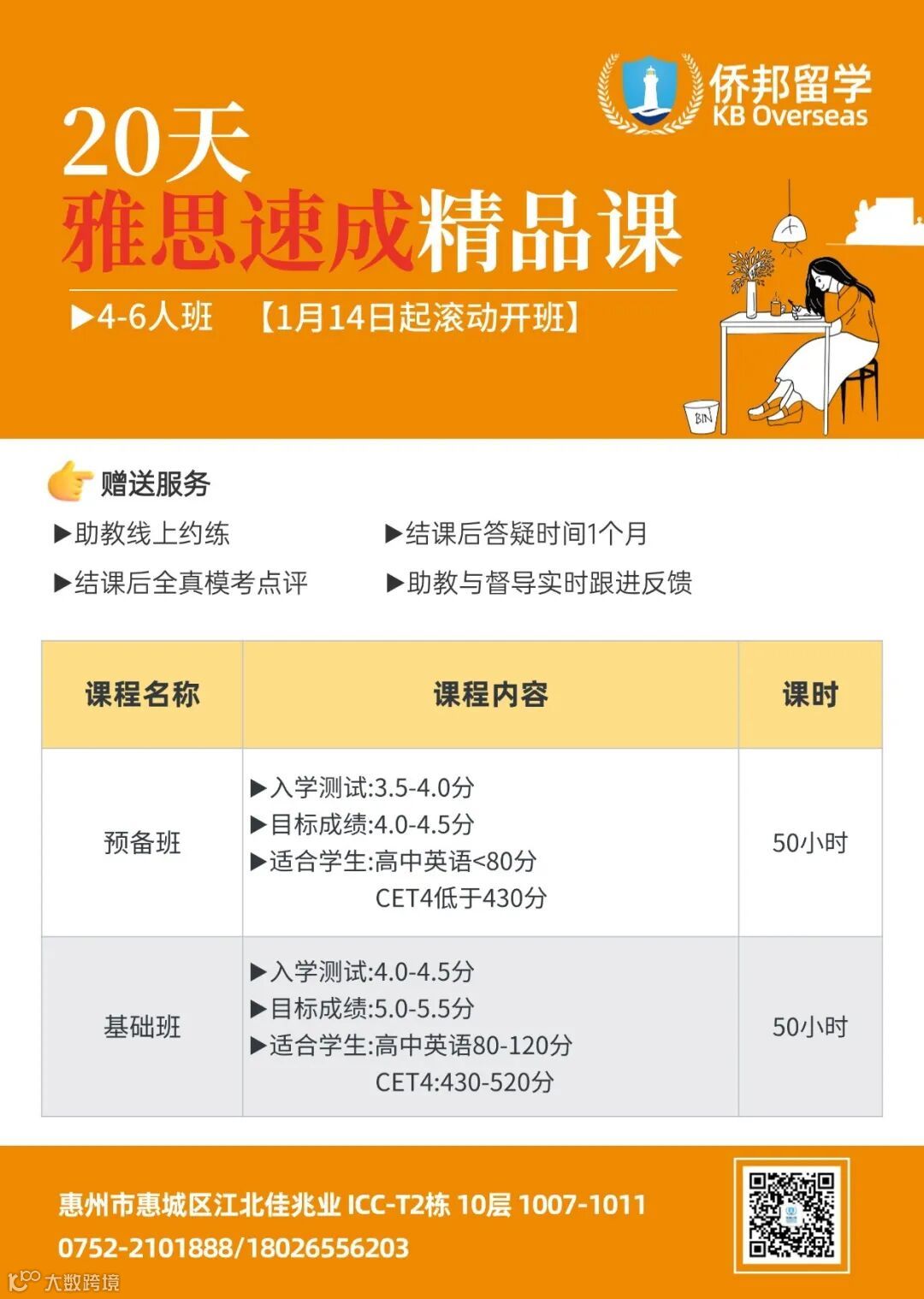 以下是【20天雅思速成精品课】,准备报名的同学们可以咨询侨邦顾问老师。