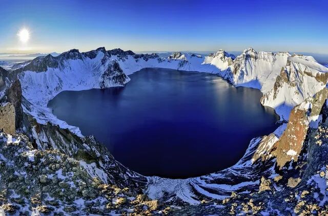 冬季的长白山是雪域天堂,可体验雾凇漂流、火山温泉和粉雪滑雪。天池被白雪覆盖,雾凇景观如仙境,运气好还能看到冰封天池的震撼。
