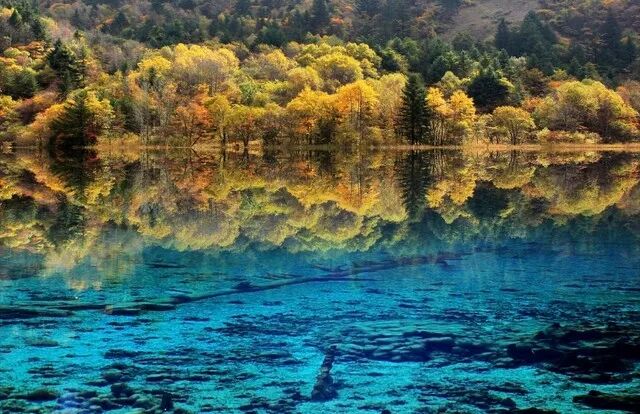 九寨沟国家级自然保护区的“九寨沟”的得名来自于景区内的九个藏族寨子,这九个寨子又被称为“和药九寨”,包括尖盘寨、盘亚寨、则查洼寨、亚拉寨、黑角寨、荷叶寨、热西寨、树正寨和郭都寨。由于有九个寨子的藏民世代居住于此,因此命名为了“九寨沟”。秋天的九寨沟层林尽染,五彩斑斓的湖泊与瀑布交相辉映,被誉为“童话世界”。此时水量充沛,红叶与碧水形成极致对比。