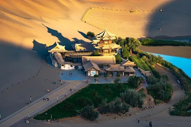 沙漠中的月牙泉与鸣沙山构成“沙水共生”奇观,避开夏季酷热和风沙,春秋季可静赏落日驼影,探秘莫高窟千年壁画。