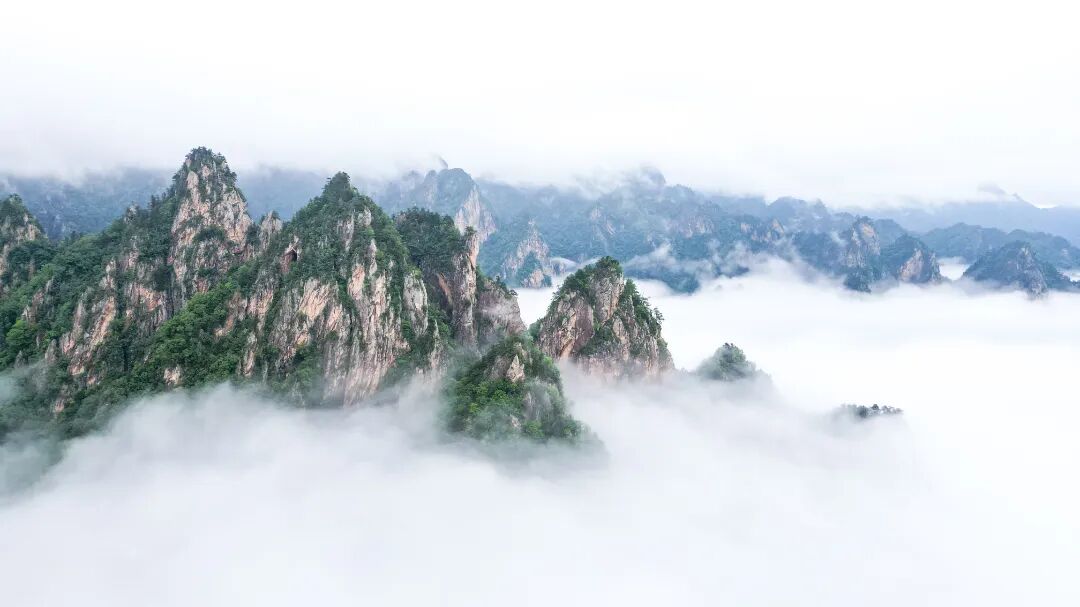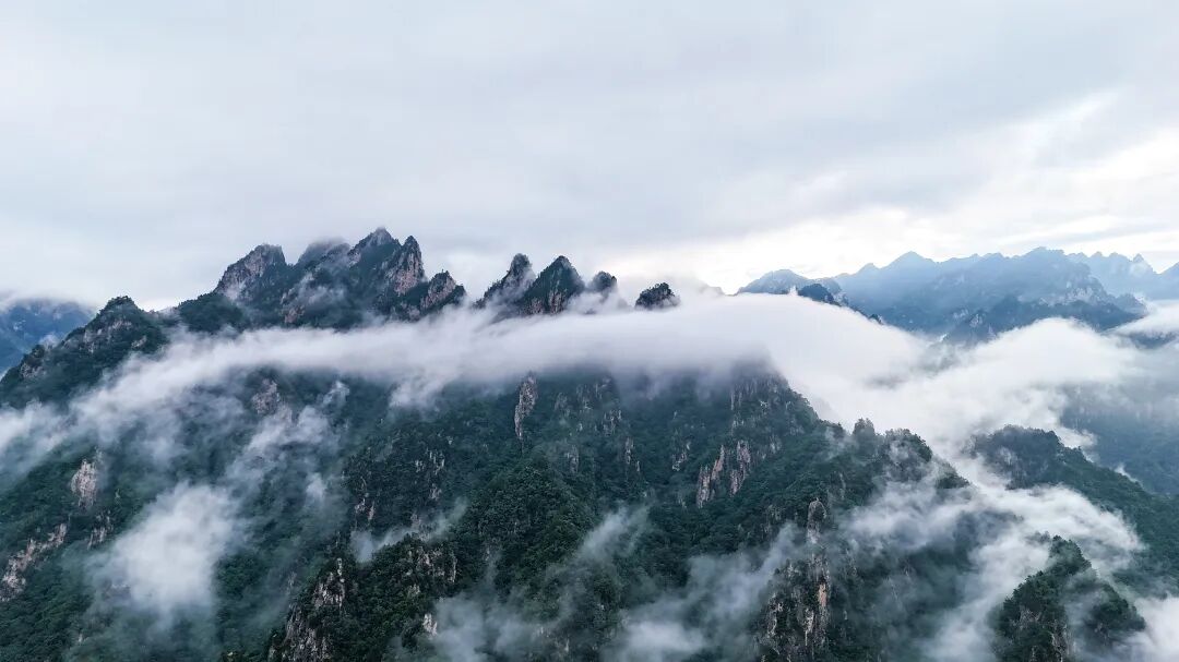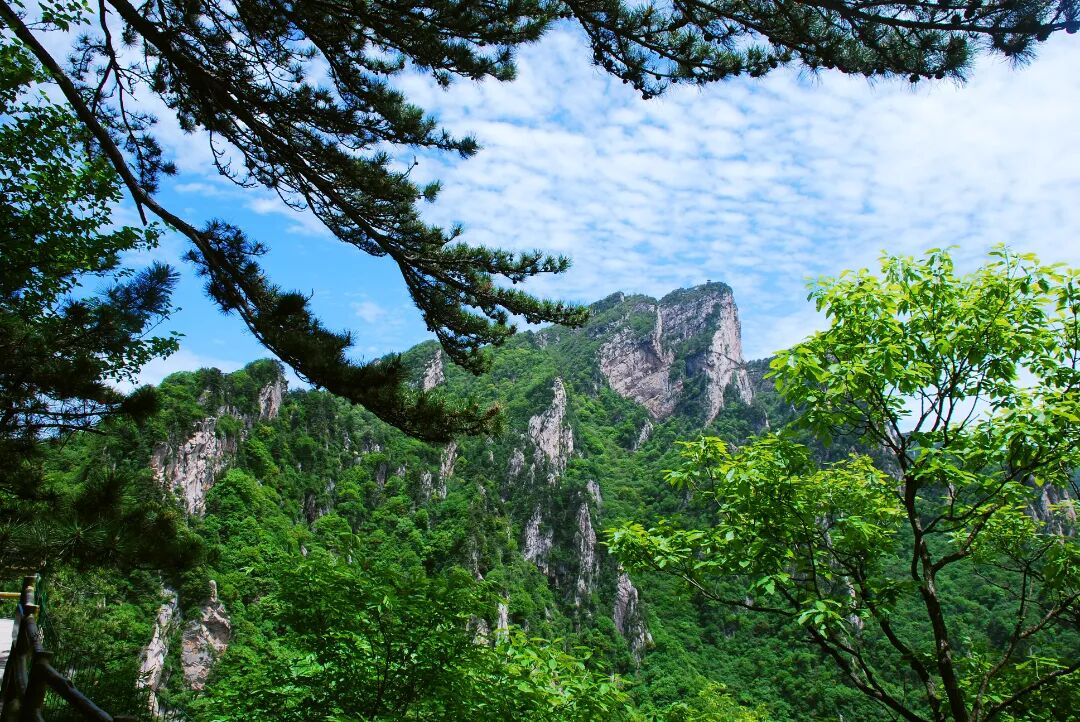 这里保存着中原地区罕见的原始森林,千年银杏、冷杉、红豆杉等古木参天,藤蔓交织如天然穹顶。春夏季节,杜鹃、紫荆等野花点缀山野,秋季层林尽染,冬季雾凇晶莹,四季轮回中演绎着自然的生命力。