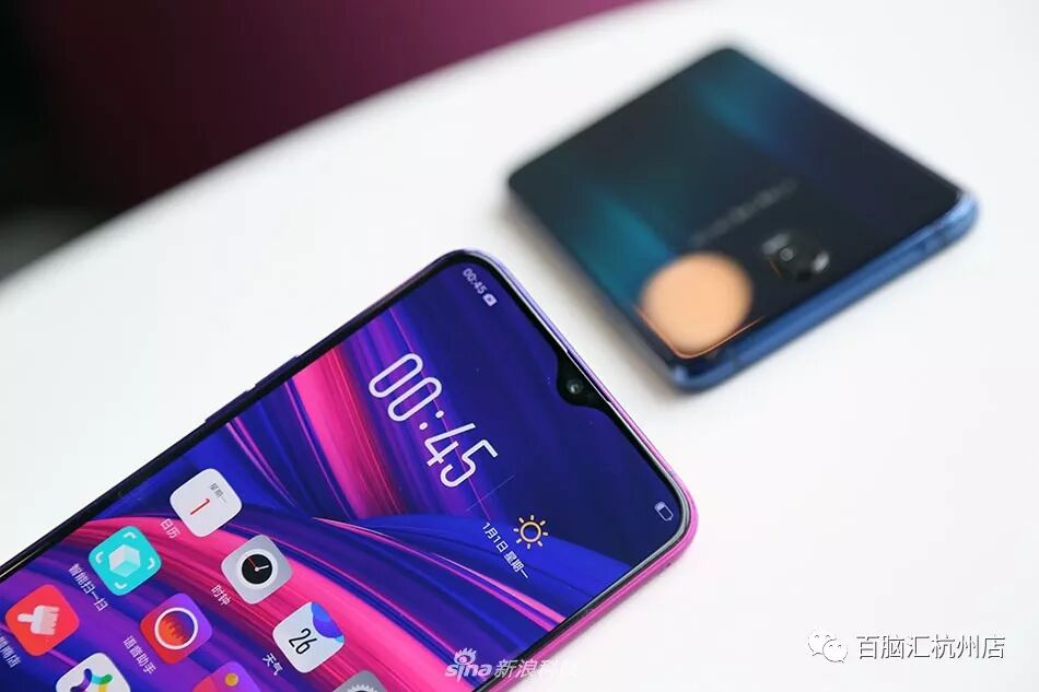 OPPO R17系列摒弃常见的U型刘海,设计了一款官方称之为“水滴屏”的刘海。据官方介绍,水滴屏的设计灵感来自于荷叶边即将落下的水滴,在动与不动之间,水滴便拥有了无限的可能性。水滴屏设计比R15的U型刘海屏传感器区域面积相比R15缩减了45.8%,整体的屏占比达到了91.5%。