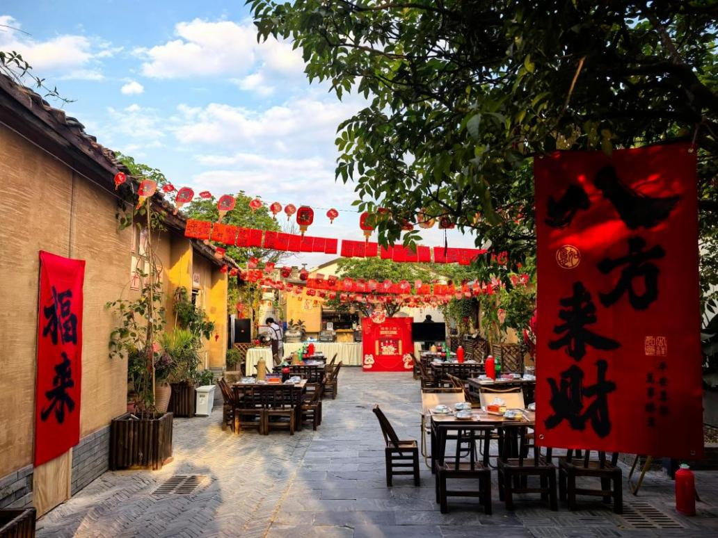 雅舍小院占地面积约600平方米,官仓社区通过整合旧村改造和“中国作家第一村”实体化等项目资源,深入推进美丽庭院建设,对这个老旧、沉寂的小院子进行改造,积极探索“庭院+文化”、“庭院+特色手艺”、“庭院+休闲餐饮”等模式发展庭院经济,以庭院经济打造文旅特色,让“一方庭院”结满“致富果实”。