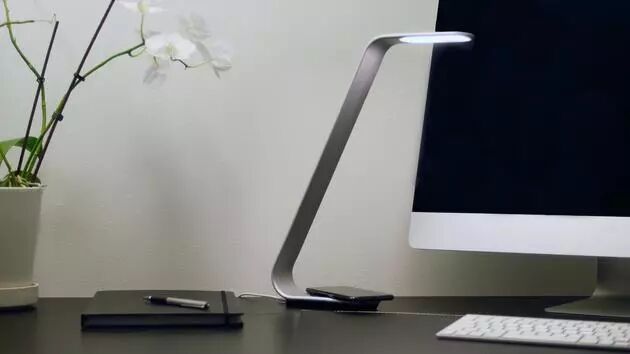 这款台灯的底座同时提供无线充电功能,将手机放上去即可充电,功率为5瓦。