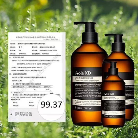 澳洲Aola'KD迷迭香洗发露,根据精油活性,测出9.3%的黄金比例调配,这个比例下对螨虫的祛除效果最好,一般只需要洗3次,就能彻底的祛除99%以上的螨虫。