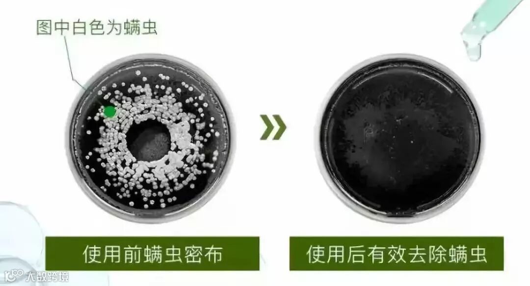 在显微镜镜头下进行对比,在实验器皿中培育大量螨虫,然后滴入Aola'KD迷迭香洗发露,可以看到在2分钟之后螨虫基本全消失了~