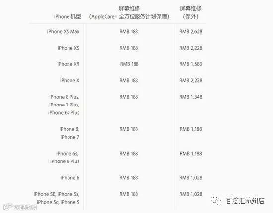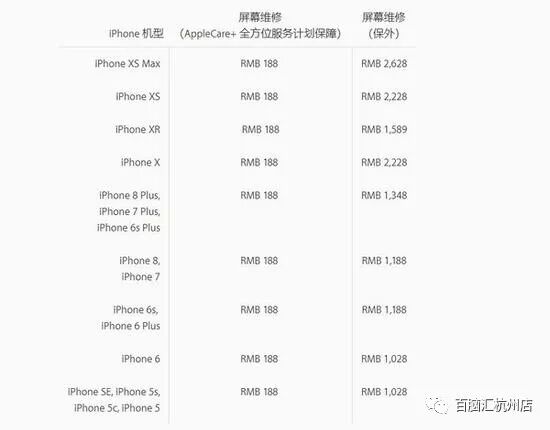 其他维损坏的维修费用为3188元,与iPhone 8 Plus费用保持一致,低于iPhone XS与iPhone XS Max。此外,苹果还提供了AppleCare费用,其费用为1369元,它可提供平自购买iPhone起为期2年的维修服务,还可多获得2次意外损坏保修服务,每次需要收取相应的服务费,对于屏幕损坏问题上,收取188元服务费,而作为一些其他损坏,则收取628元的服务费。