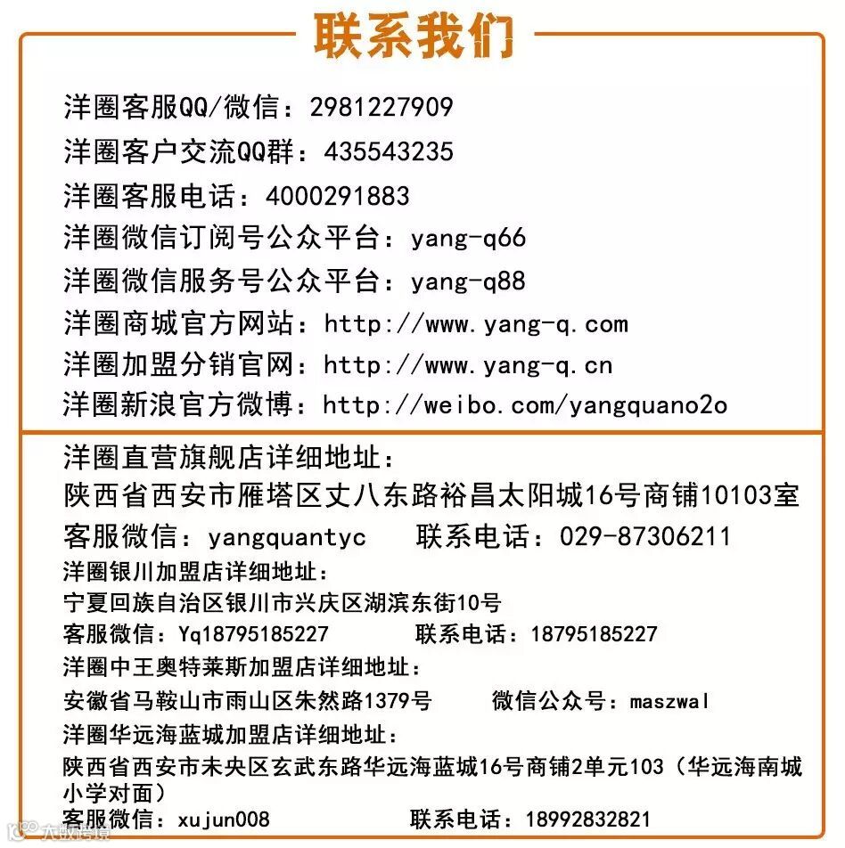 此外,洋圈大力提倡创业扶持计划,帮助加盟商实现创业梦想。目前,洋圈已在陕西、宁夏、安徽等建立了分支机构和加盟店,总体营业面积近万平方米,洋圈品牌在西北处于领先地位。而新加盟的“洋圈华远海蓝城店”目前已成为洋圈的一份子,和洋圈一起拼出未来!