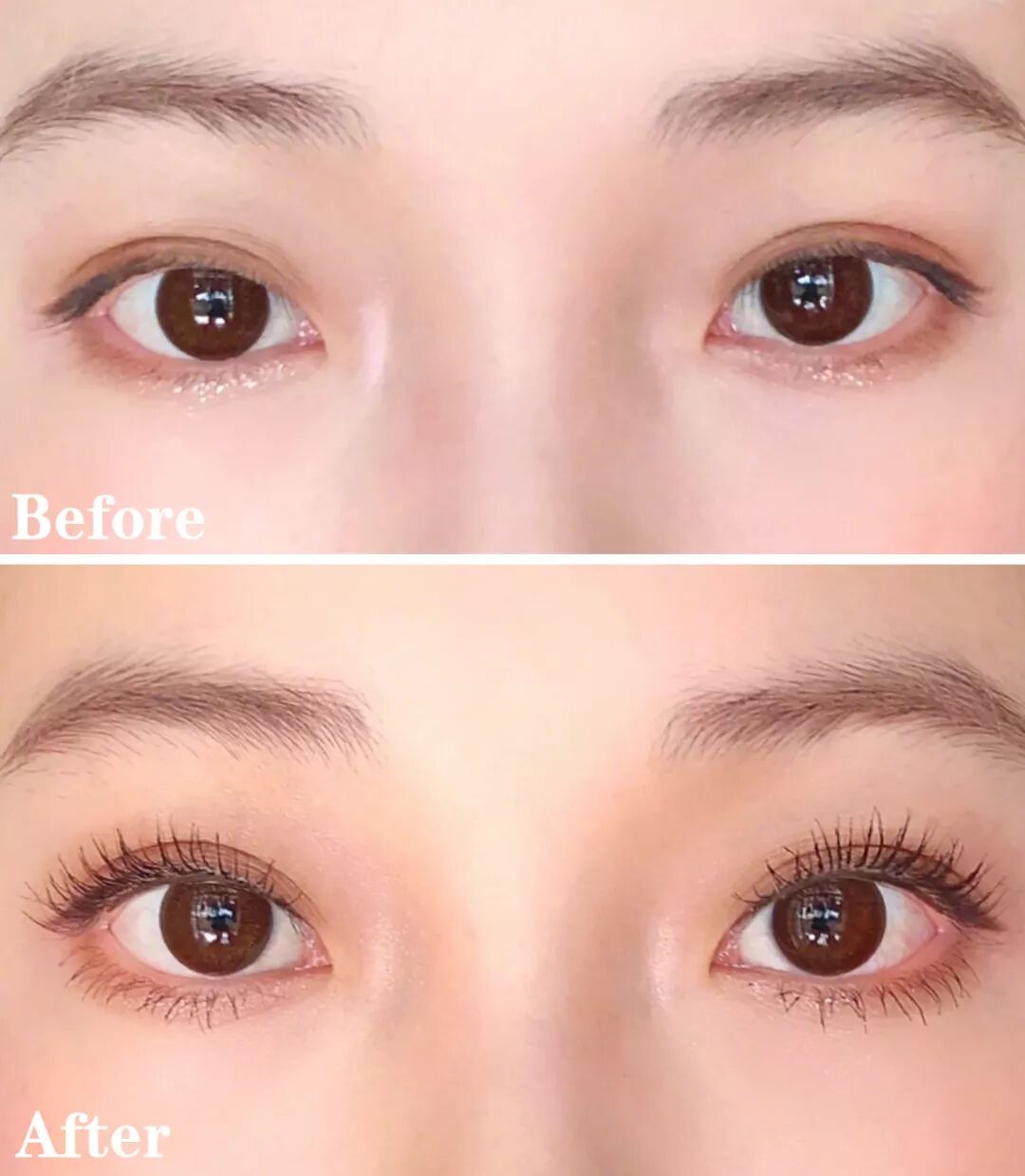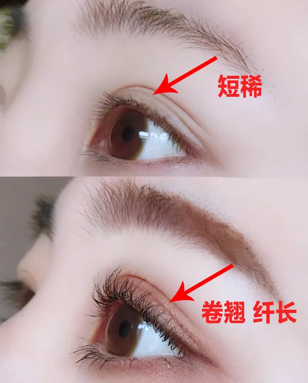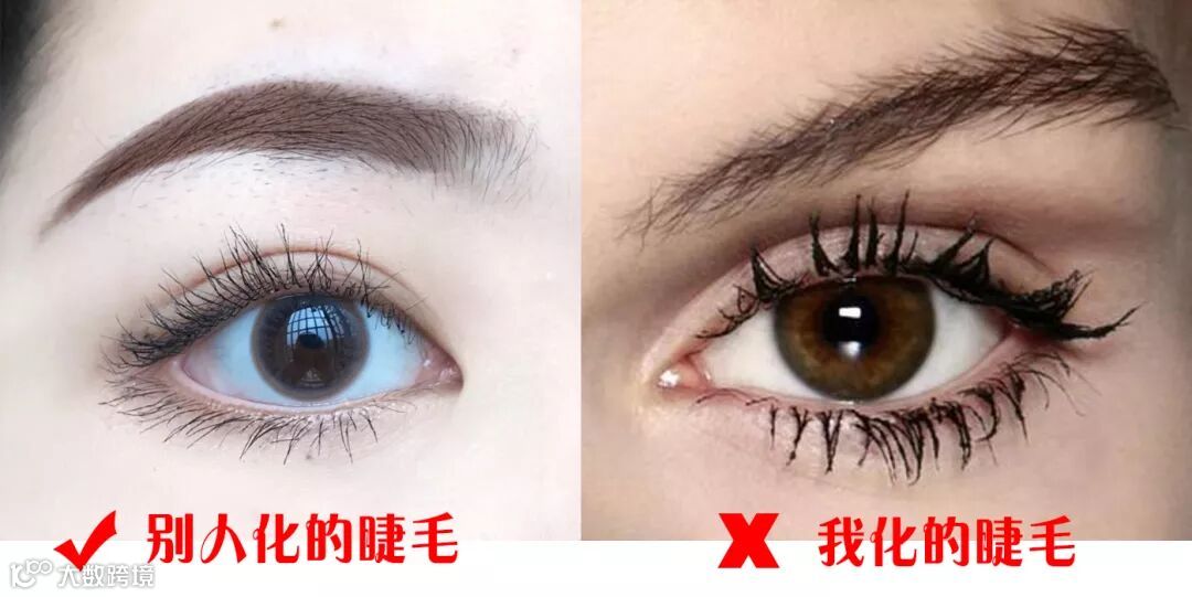 同样一个人,睫毛短,眼睛小,给人的第一印象就是有眼无神。但有了长睫毛和眼线的加持,简直判若两人👇!