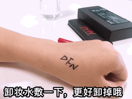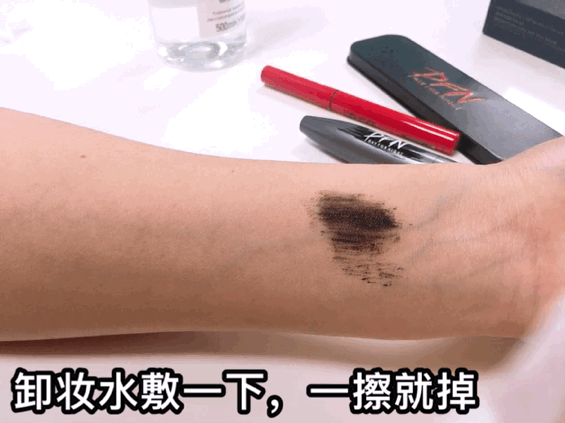 另外,DFN睫毛膏防水性很好,但依然很好卸。用卸妆水稍微敷一下,轻轻一擦,干在手臂上的睫毛膏就融掉啦!干干净净,无残留~