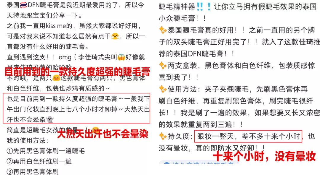 DFN睫毛膏主打防水、防晕染功能,妹纸们完全可以把心放在肚子里。遇水不脱妆,妆容依旧稳稳在线↓