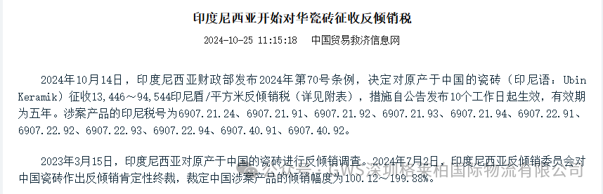 印度尼西亚将对我国这两种商品继续征收反倾销税