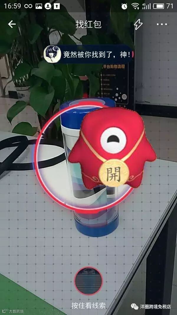 2、洋圈在发放AR红包时选取的是太阳城门店内的某一处物体,因此支付宝AR红包只能在太阳城门店内领取。