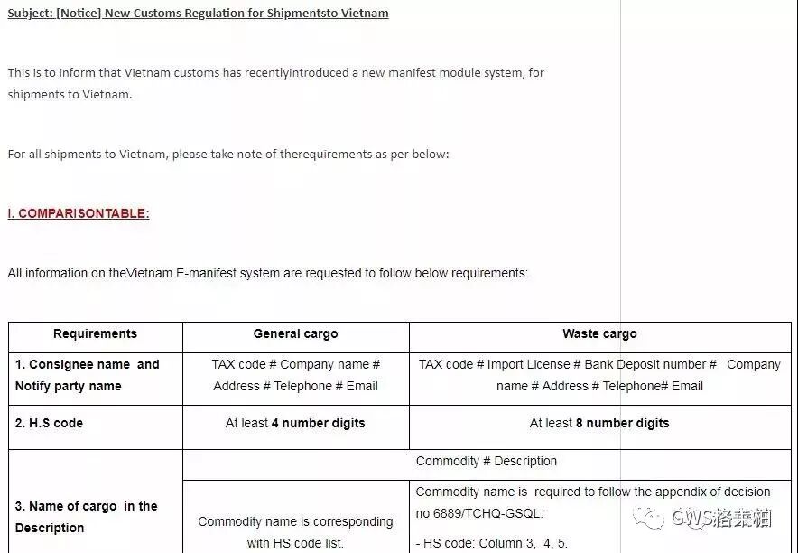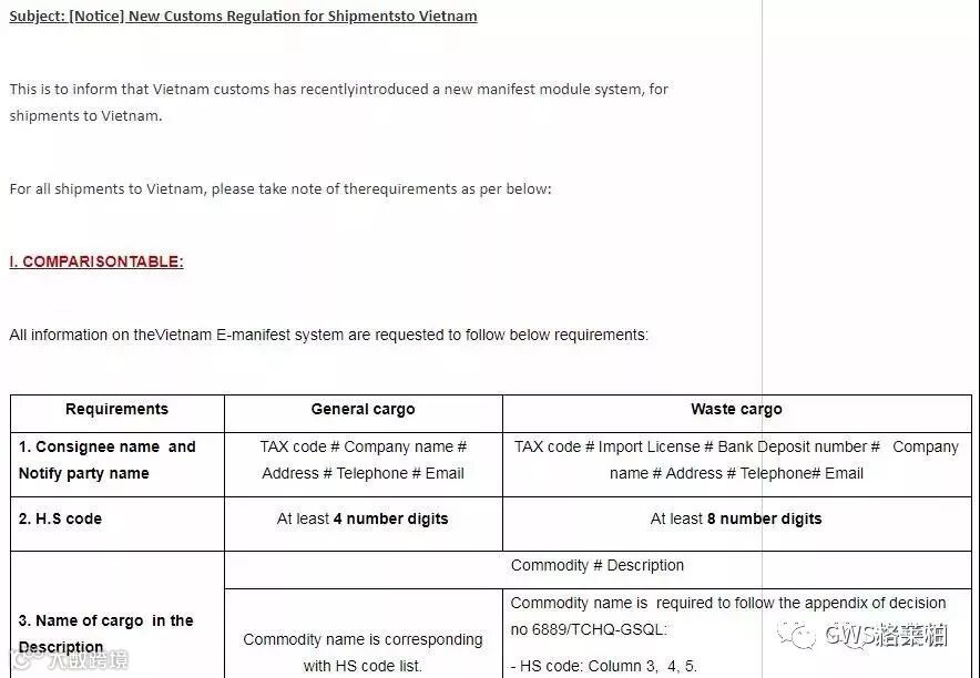 有出口越南的外贸、货代小伙伴注意了!近日,越南海关更新了进口法规条例,要求装运单据上必须显示货物详细信息(提单/货物舱单/提单说明等船务文件),并即时生效。