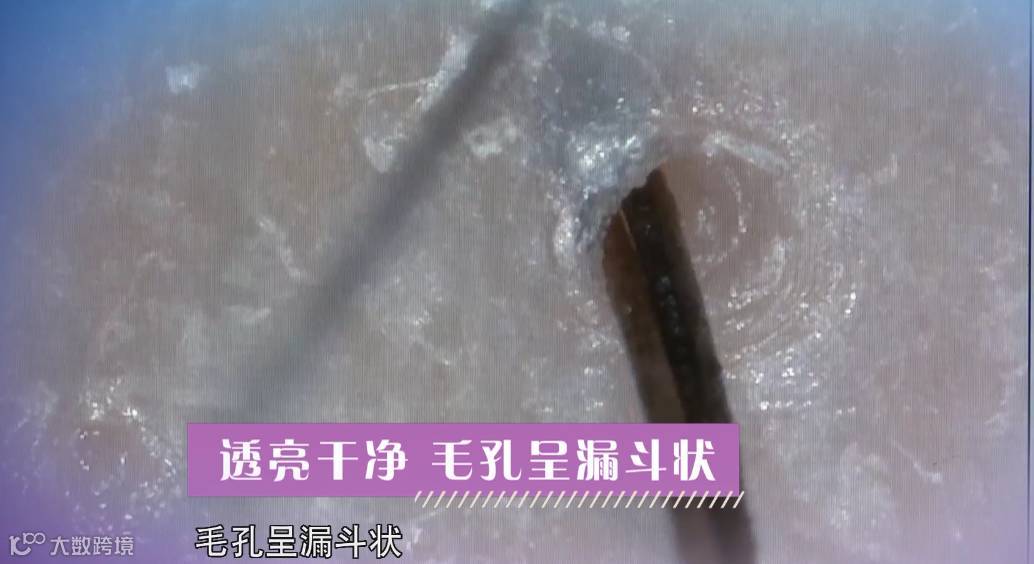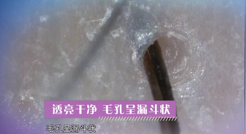 在专业头皮检测视镜下,健康的头皮应该是略呈青白色,干净并没有过多的油脂和皮屑,长有头发的毛囊都没堵塞,呈现漏斗状,并且每个毛囊有2~3根头发。