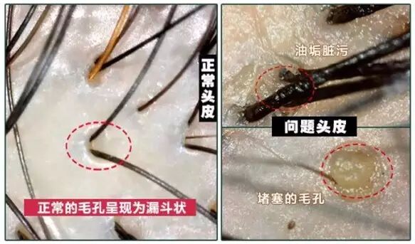 如果没办法去专业检测机构检测,也可以凭借目测。当出现头皮痒、头皮屑增多、头发变稀疏、头皮变油、开始大量脱发(每天掉发约超过100根),千万别以为只是该洗头了,其实你的头皮已经不健康了,而出现这些不健康的现象,都和头皮角质过厚、头发毛囊堵塞有关。