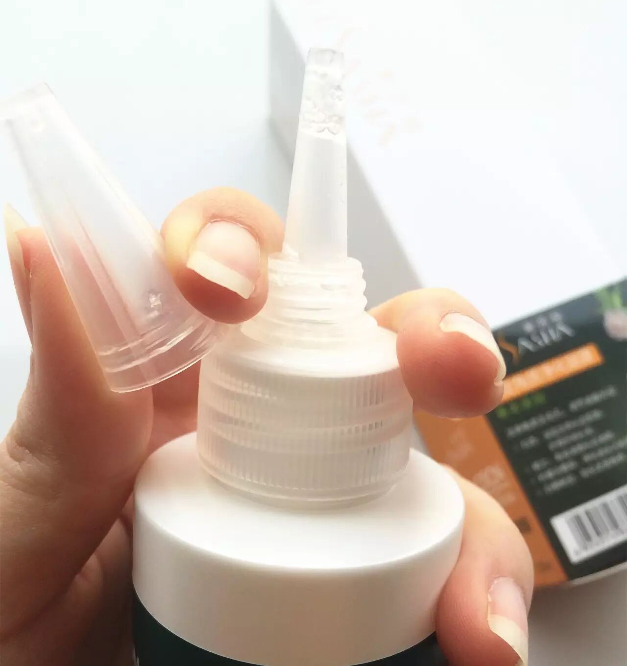 用起来非常简单,先把上面的小盖子扭开。然后在贴着头皮,呈放射状地把它挤出来。