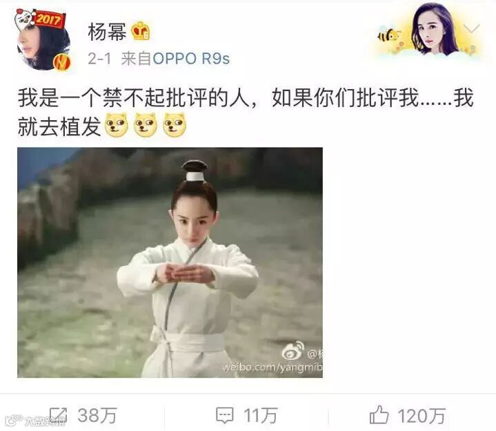 原来,少女幂也掉发,还说,再批评她,就要去植发了。