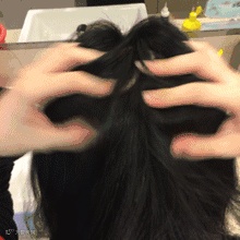 然后用手沾少量水,一边把头皮打湿,一边按摩头皮。注意不要用指甲去抓挠头皮,用指腹按摩就好了,因为指甲会损害头皮。