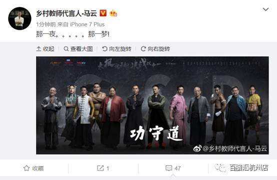 而在海报最中央的(我们俗称C位),妥妥的领衔主演,男一号,就是马云!听说他主要“负责打人和被打