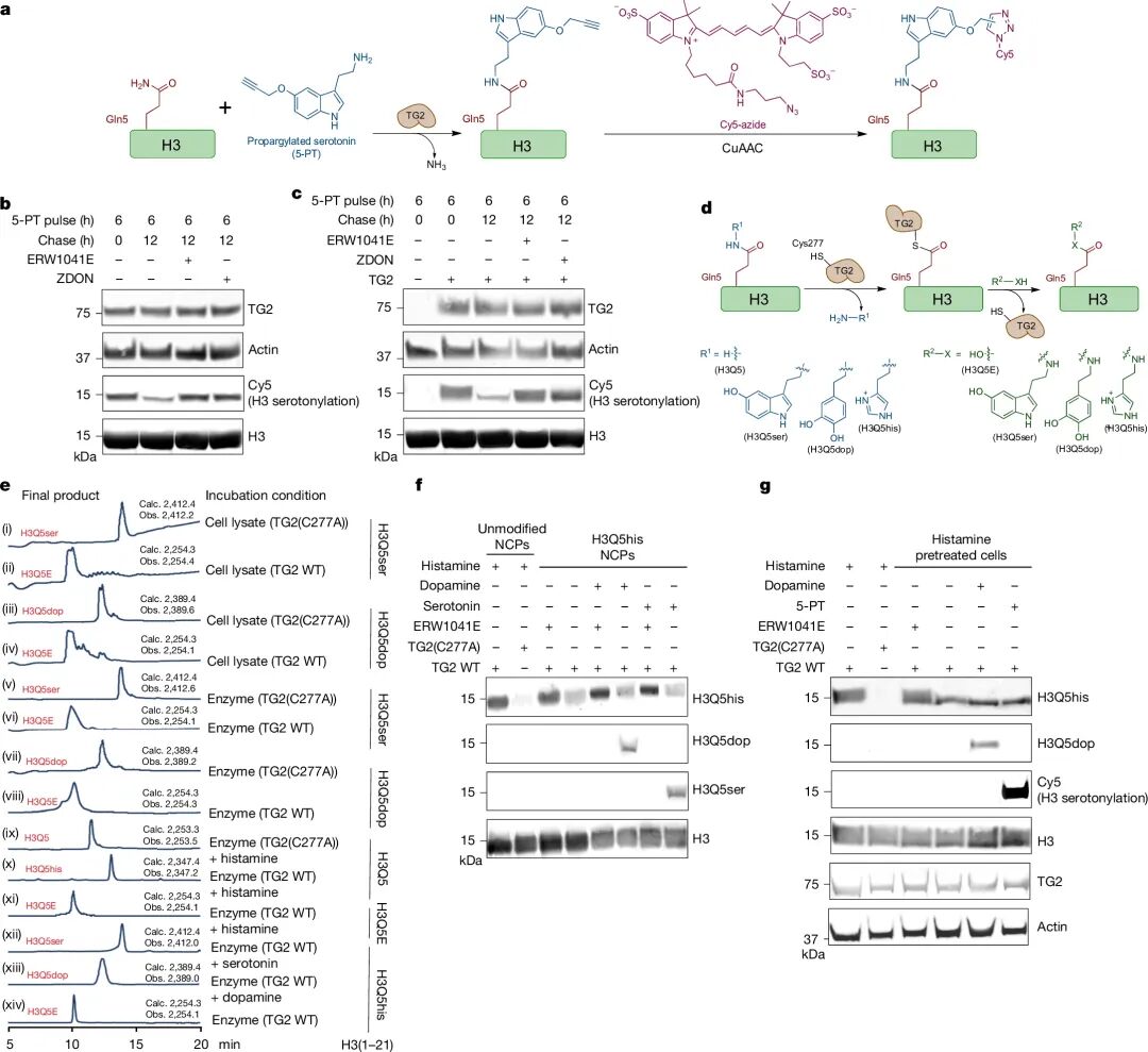 TG2是组蛋白H3单胺化过程的写入者、擦除者和交换者