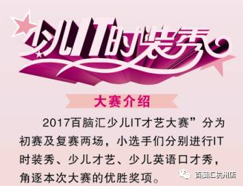 百脑汇展开了2017年少儿IT时装秀,让您的孩子有个美好的童年回忆,现在就可以带着您的孩子前来报名了