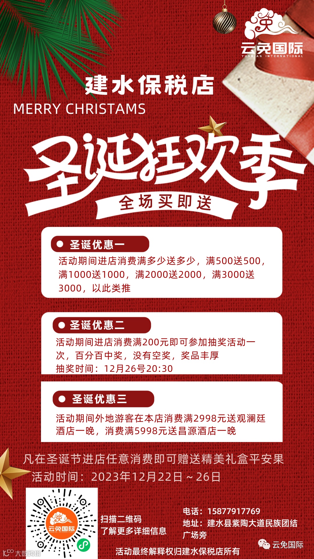 双旦到来,建水保税店全体员工祝您:圣诞节快乐!