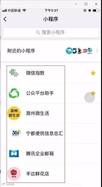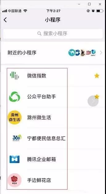 也就是我们常说的附近小程序,打开微信小程序,第一列就是附近小程序,随着越来越多的人发现并开放了小程序,附近小程序栏目的数量逐日增多。