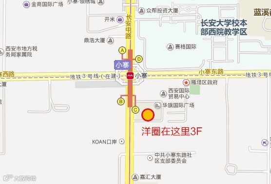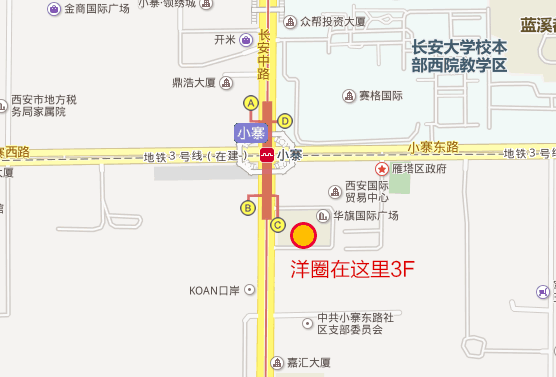 公交路线:14路,215路,30路,34路,36路,323路,400路,502路,521路,600路,603路,704路,721路,教育专线,通宵2号线,小寨下车即可