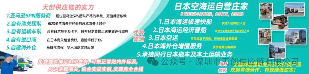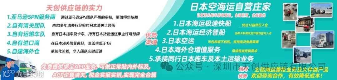 自去年日本JCT实施以来,许多卖家朋友们在经营中仍然是“走一步看一步”。目前,缺乏强制性政策的颁布,使得未来是否会像欧洲VAT那样实施代扣代缴尚不明朗。希望以上解析能帮助大家更准确地理解日本消费税的中间申报,避免相关风险,确保合规经营。同时,借助天创供应链提供的免费绑定ACP;选择走日本ACP空运、ACP海运,助您实现合规经营。